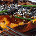 sur une lamelle de grenadier, mettre une lamelle de courgette, et procéder comme pour le premier en disposant la tomate confite au lieu. Rouler. Embrocher.