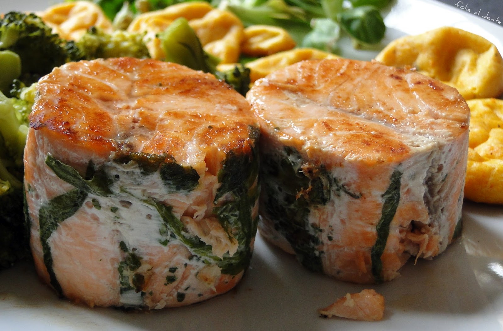 Remplir de moitié le creux des cylindres la salsa brava versée et / ou du pesto de roquette. J'ai mis un peu