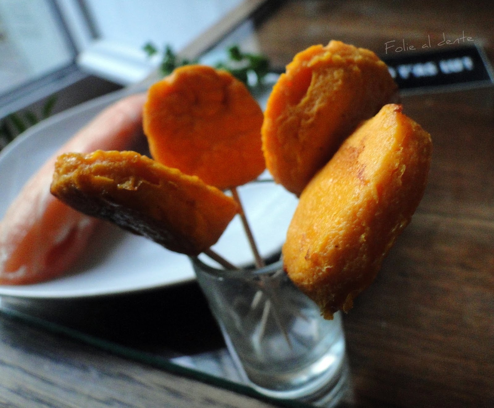Mixer les ingrédients ensemble. Laisser reposer 2 heires au frigo et former des carottes avec du film alimentaire résistant à la cuisson, en forme de carotte.