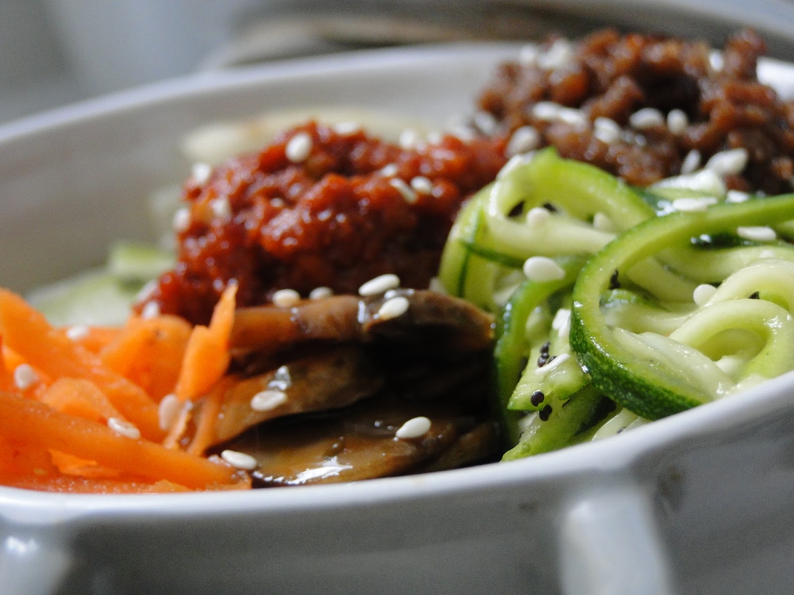 la ciboulette et des graines de sésame.On ne le vois pas sur les photos mais au dernier moment je casse des œufs en en levant une partie du blanc (pas tout) et le dispose au centre avant de passer le BBB au four, ce qui cuit un peu l'oeuf, grille le sésame et permet aux sucs de traverser le riz.
