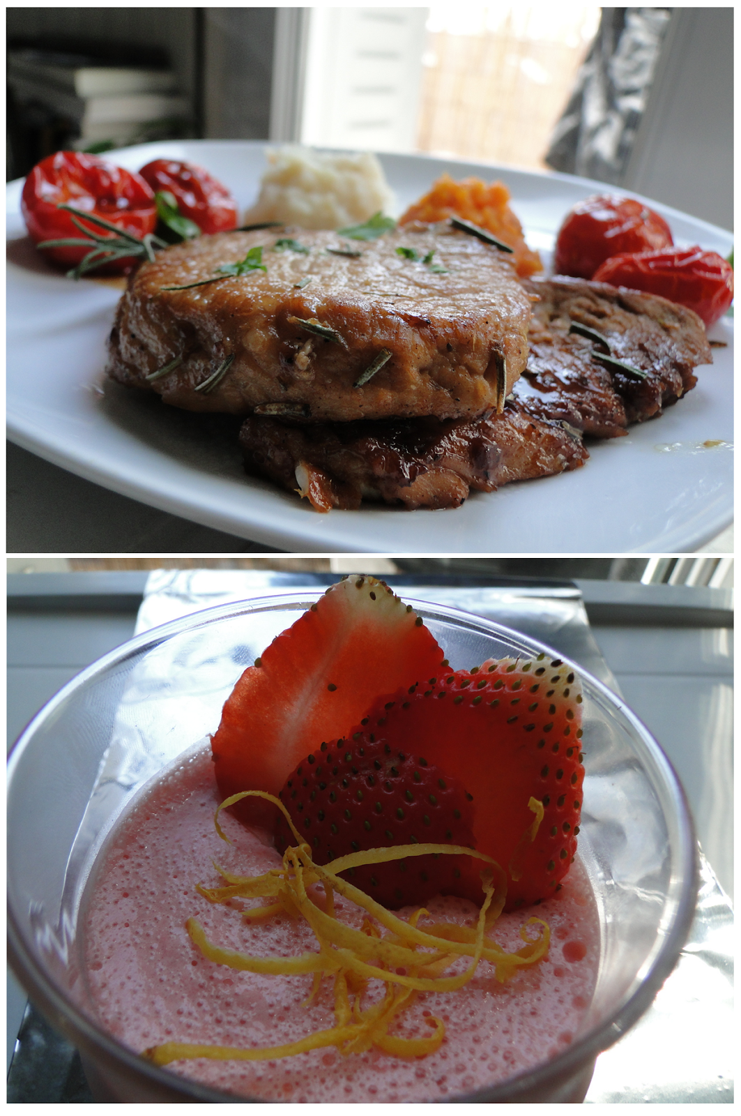 Accompagné dans mon cas par une purée de céleri-rémoulade, une purée de carotte et des tomate cerise glacées dans la sauce de la viande.