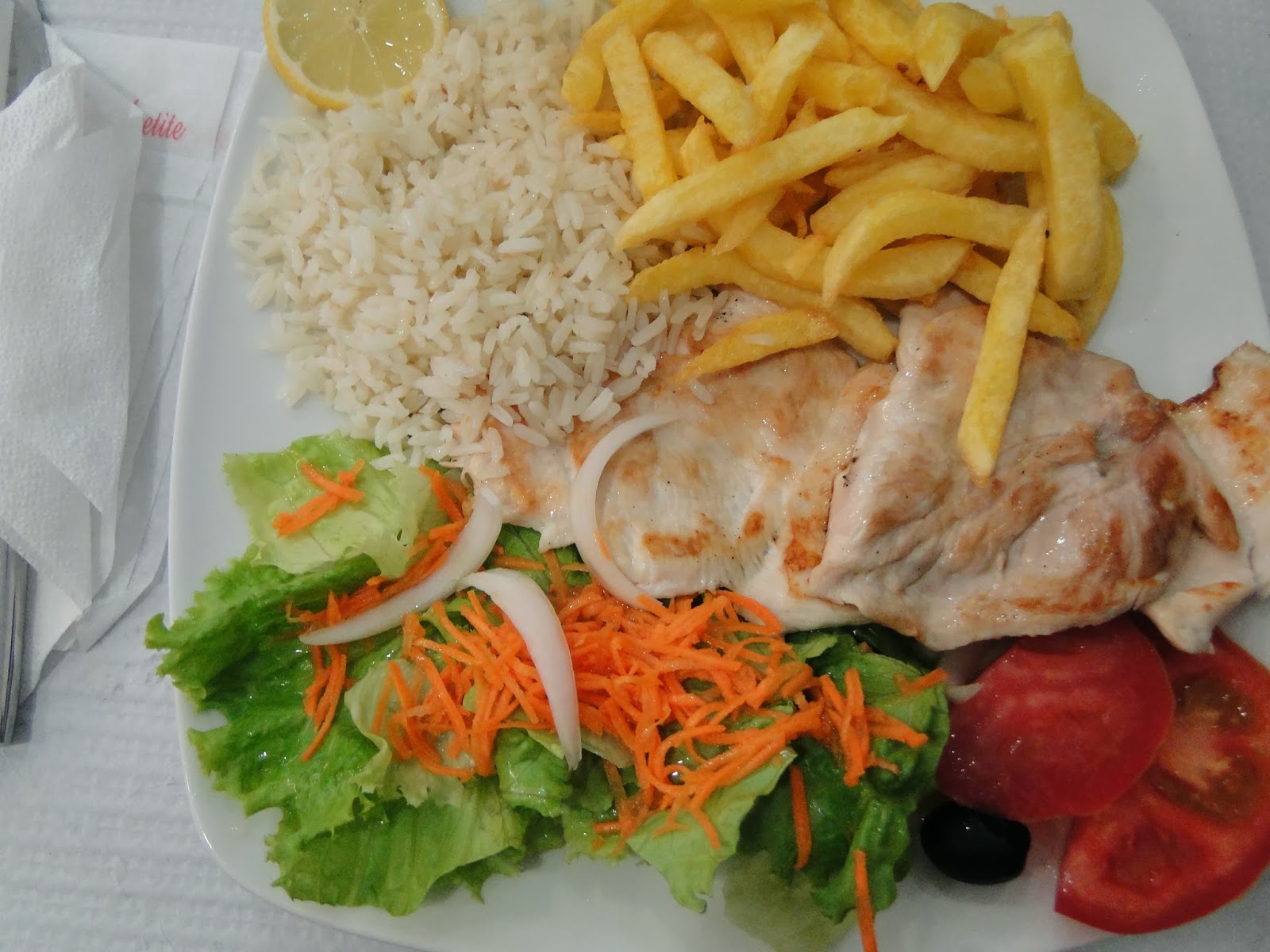 Le dernier repas avant l'avion n'est pas une réussite. Un restaurant rua de Cedofeita parce que ça m'avait laissé une bonne impression. Erreur. La carte nous invite à les "liker" sur facebook et je n'en ferai rien ; le serveur nous snobe le plat commandé est très visiblement moins bien garni que le même commandé par la table d'à côté... en l’occurrence je commande ce qui semble le plat du jour un Rancho et ce plat de viandes et saucisses garni de quelques pois chiches et nouilles ... arrive en l'état un plat de pâtes et pois chiches où je cherche désespérément des morceaux de viandes qui s’avèreront être uniquement le gras de la viande.