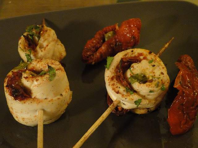 Ajouter 1 tomate confite par aiguillettes et ajouter des herbes légèrement.