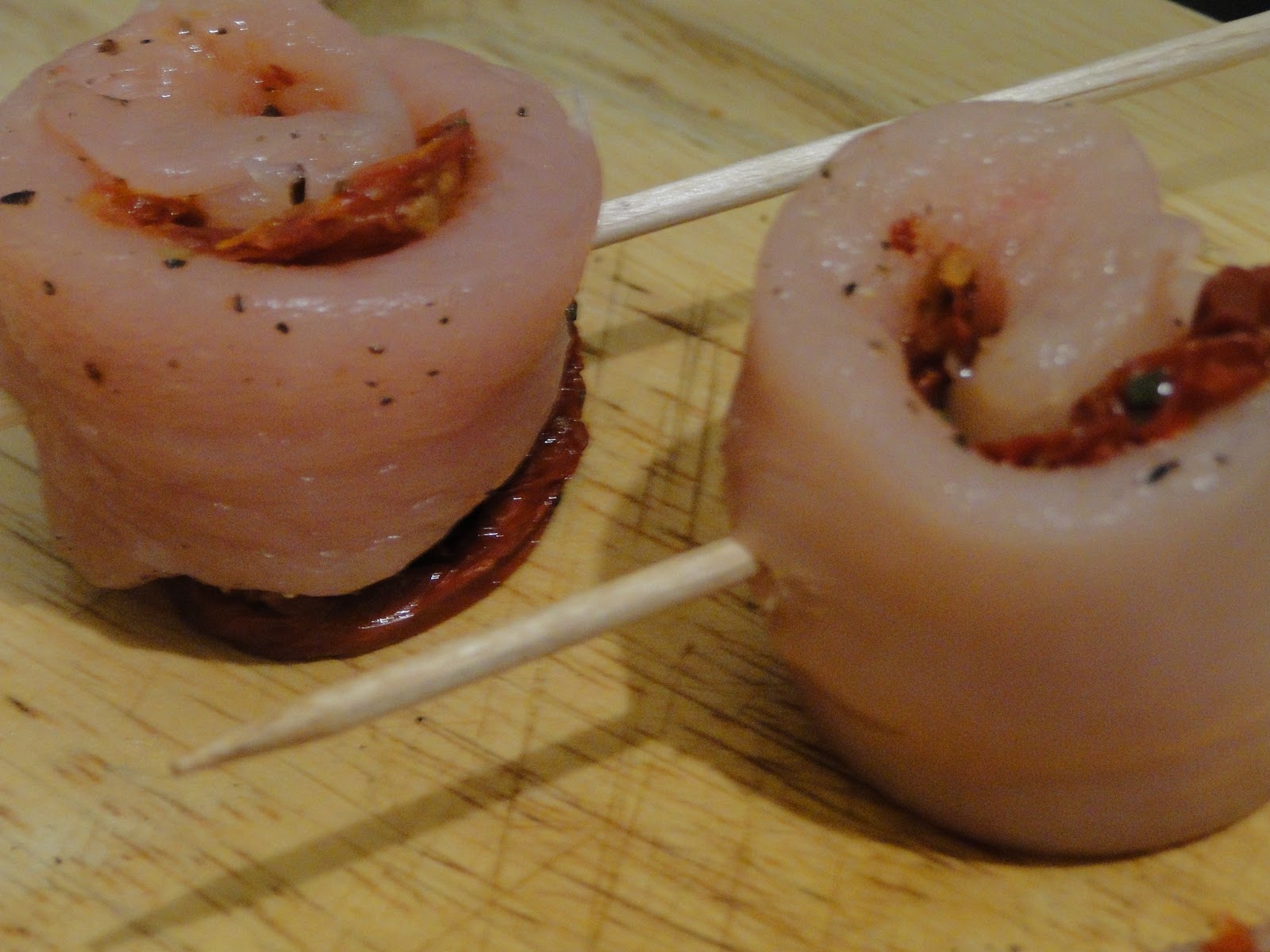 Étaler les aiguillettes et les passer au rouleau à pâtisserie. Saler, poivrer.