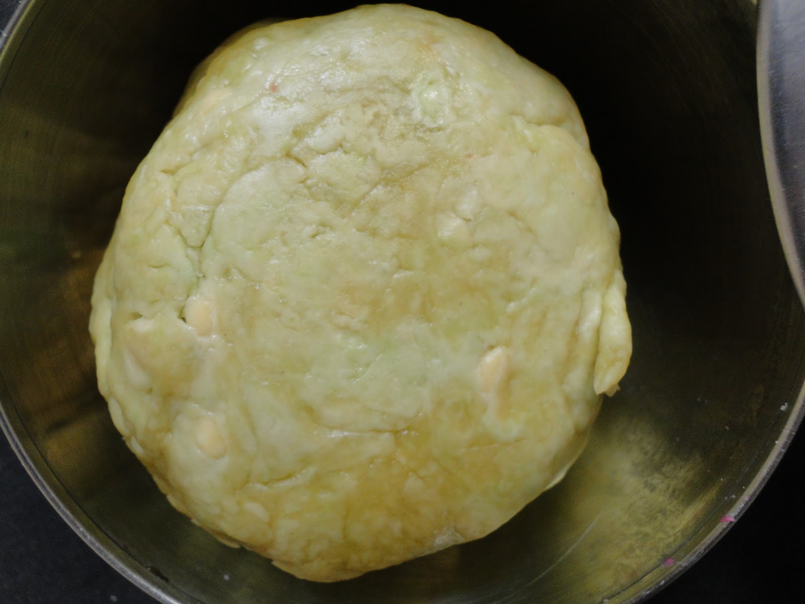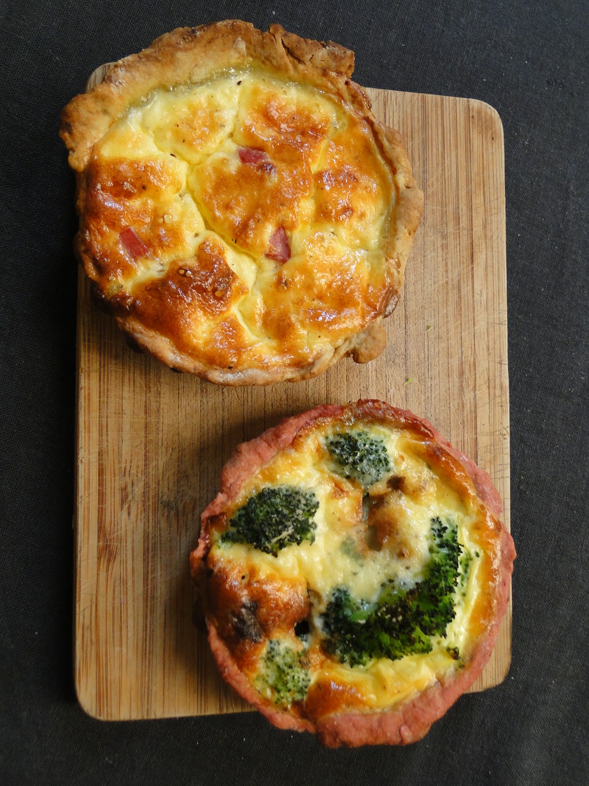 Dans un autre saladier fouetter les œufs, le lait et le beurre fondu, ajouter les échalotes. Ajouter cette préparation liquide au mélange sec précédant et mélanger à minima : juste assez pour avoir une préparation homogène.