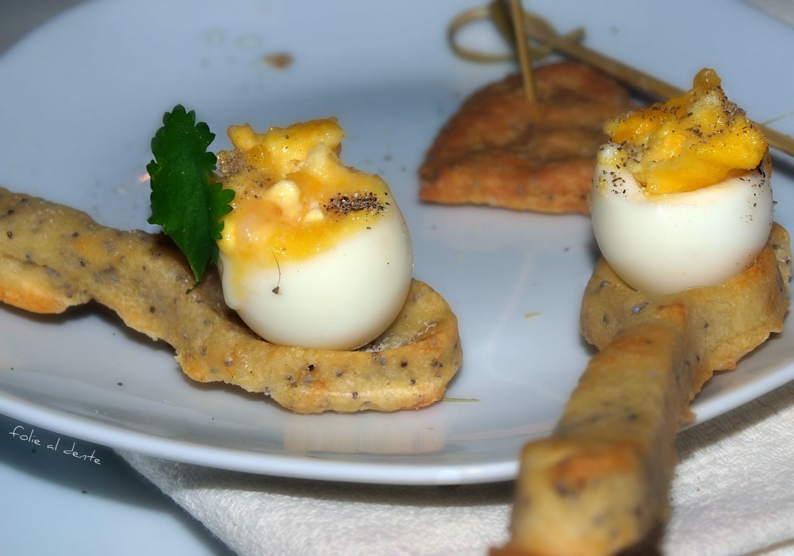 Sucettes d’œufs de caille au parmesan et coriandre