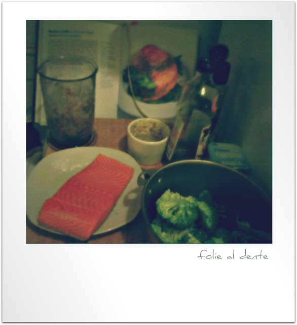 Je retiens sa recette de saumon au brocoli mais je l'adapte. Sa sauce est théoriquement aux anchois, ce ne sera pas exactement les mêmes saveurs mais je tente la sardine, en utilisant une partie de mes rillettes de l'entrée.