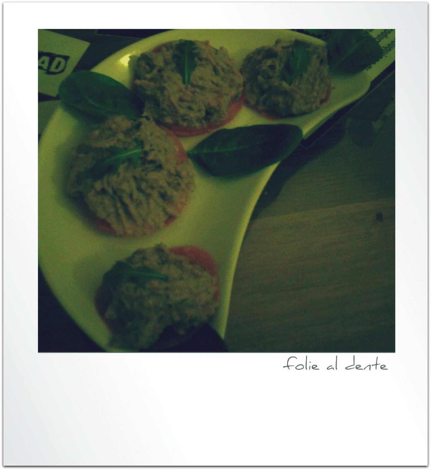 Je mixe le tout ensemble et en tartine des rondelles de tomates. L'idéal aurait été d'avoir des tomates cerises à remplir.