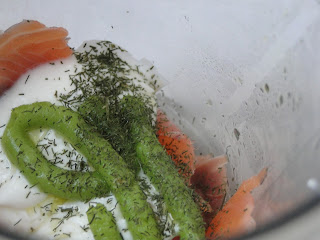 Je cuis à la vapeur les dés de saumon, juste 1 ou 2 minutes selon la quantité. Pour les blanchir mais pas les cuire.