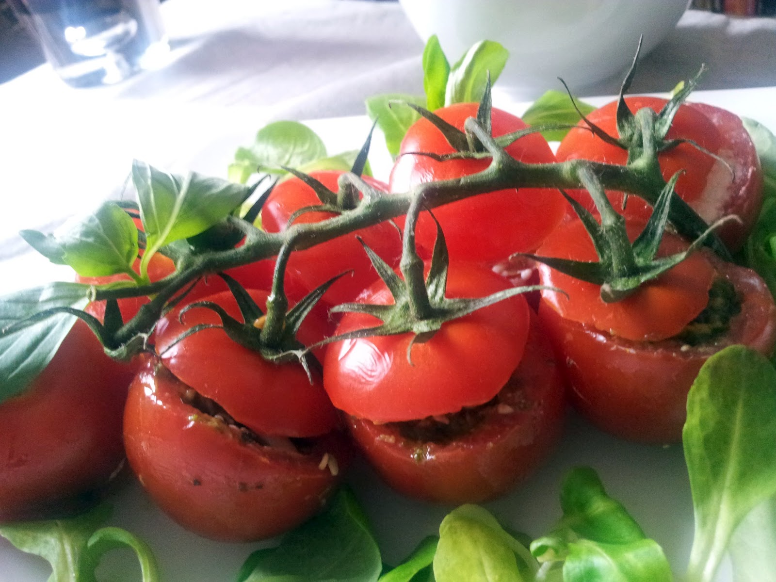 Et en manière d'antipasti, pur rester dans les mêmes tonalités : des tomates grappe fourrées