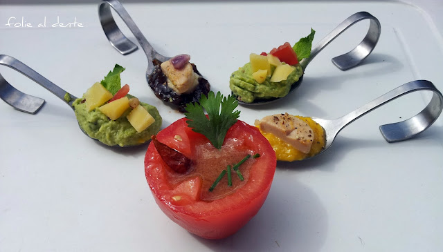 pour la décoration : des morceaux de comté, une feullie de menthe et un morceau de tomate.
