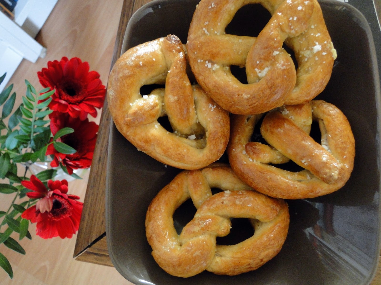 Déposer les bretzels ainsi formés sur une plaque de cuisson recouverte de papier sulfurisé.