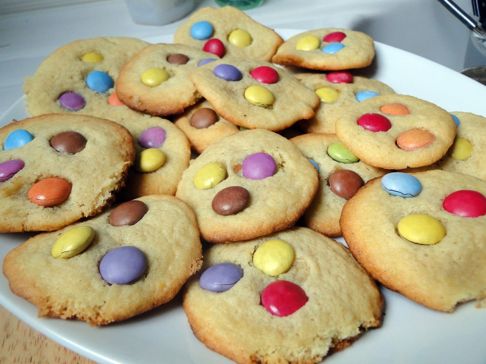 A la sortie du four, mettre les smarties dans les cookies en les enfonçant doucement.