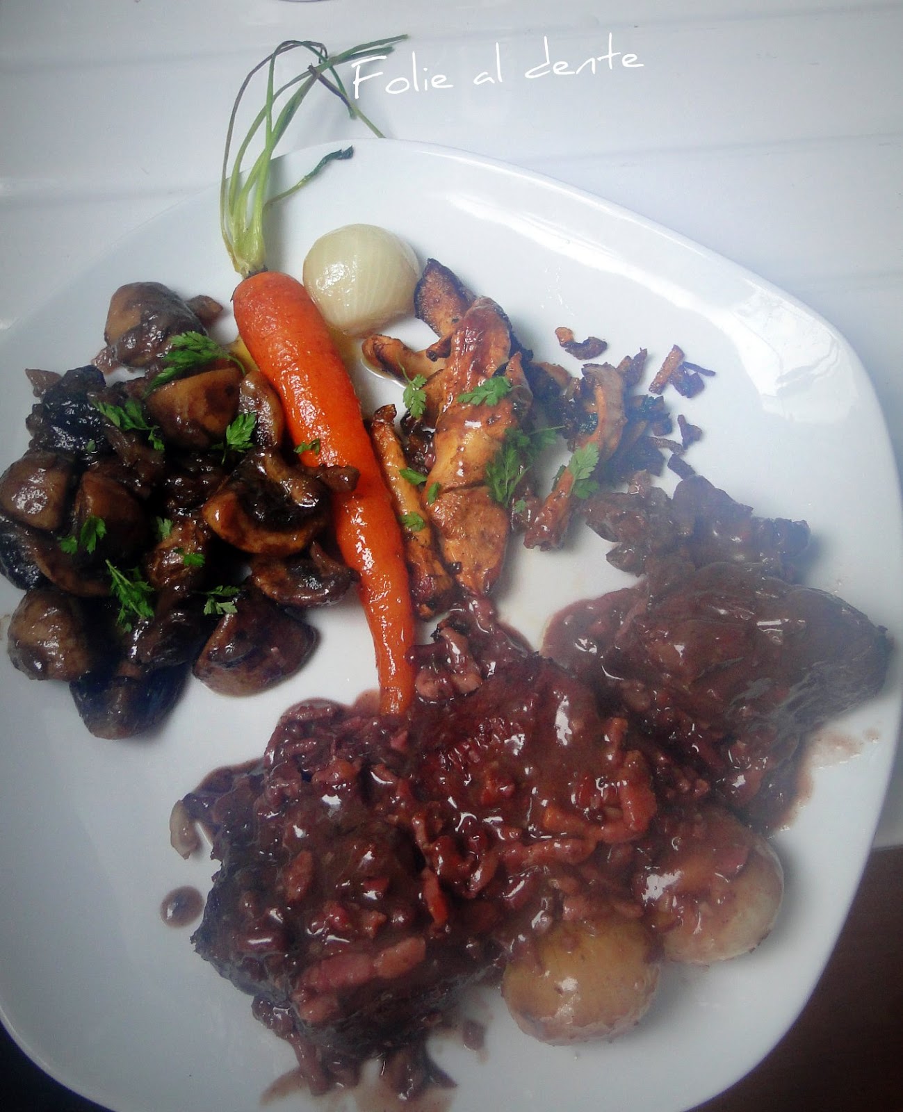 Dans le cas des champignons de Paris, j'ajoute le reste de la sauce du goulash bohémien (mais je peux imaginer une variante avec de la farine du vin rouge de l'eau bouillante et un peu de yaourt grec)