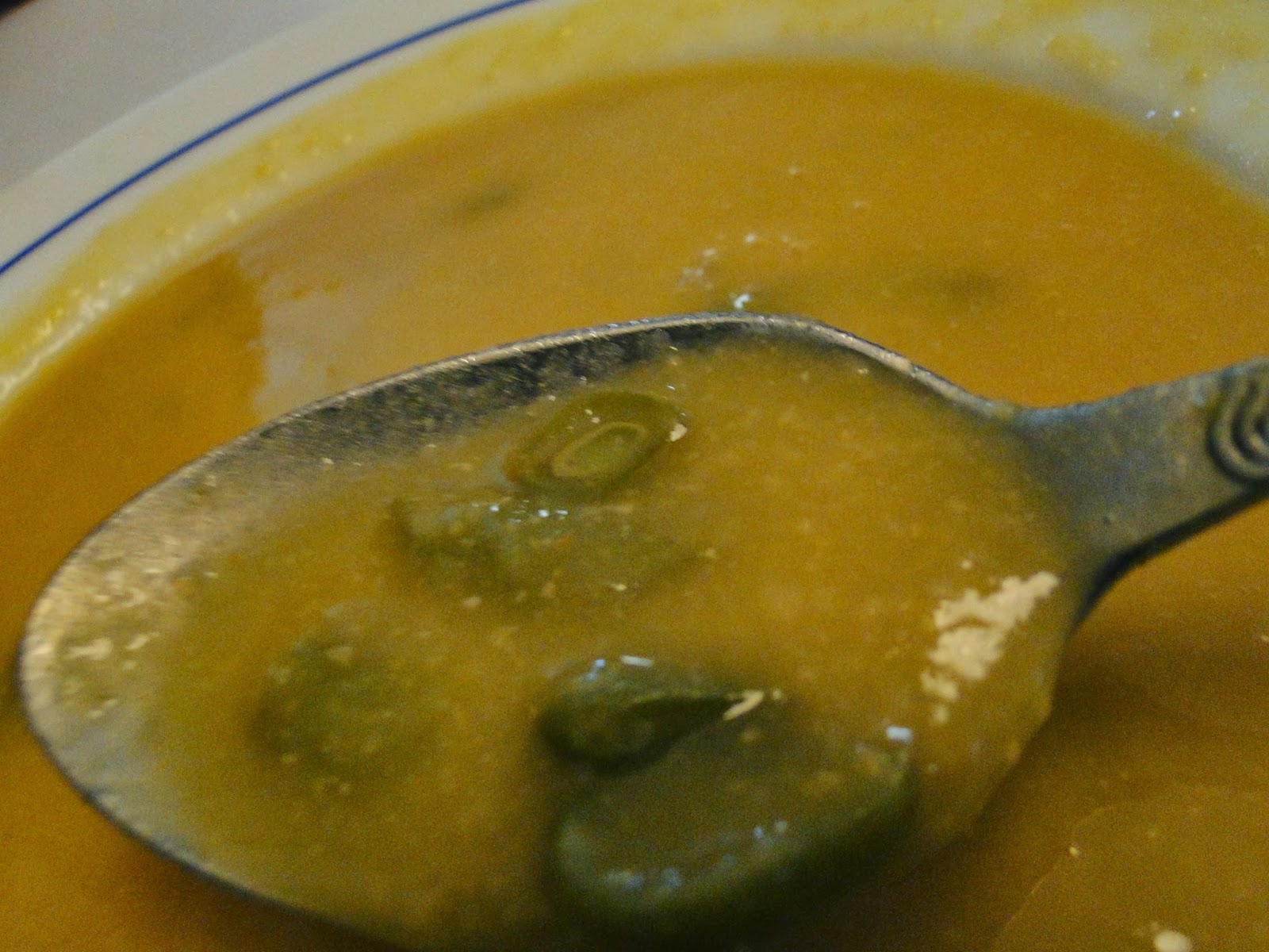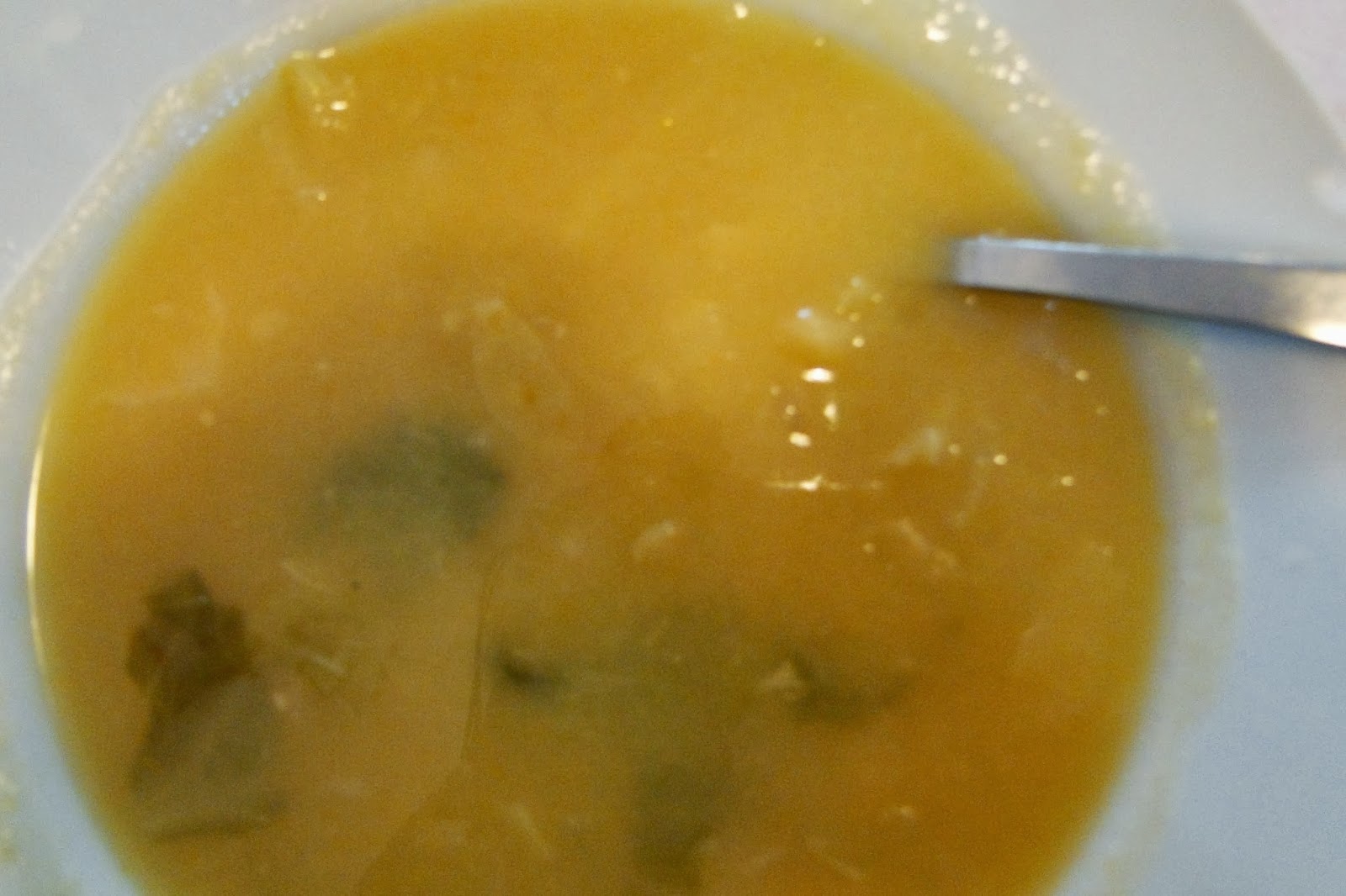 Je commande une soupe de légumes du jour à 90 centimes d'euros qui vient d'une belle marmite que je vois de ma place au dessus de laquelle un post-it indique "sopa marta"