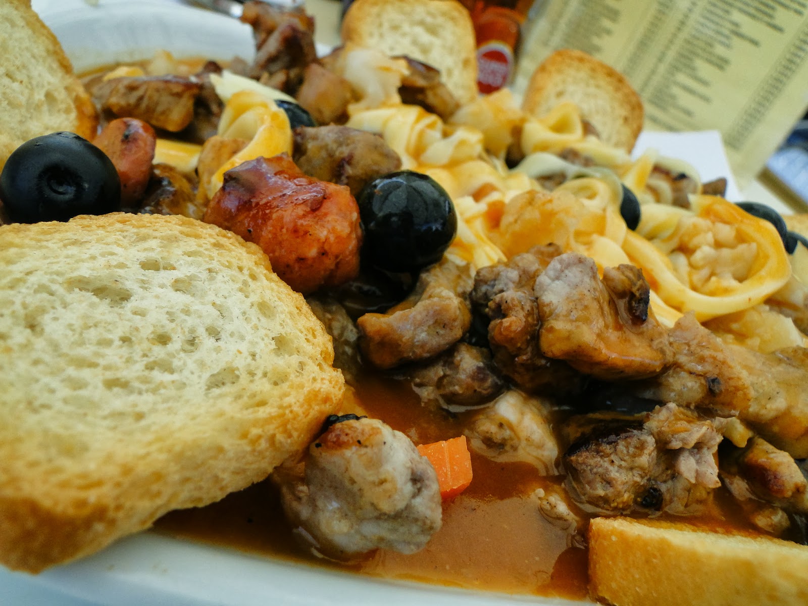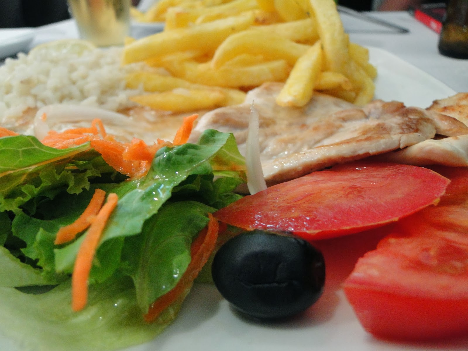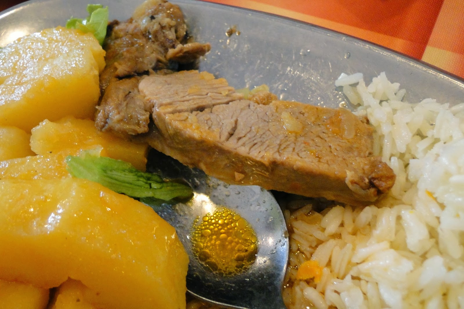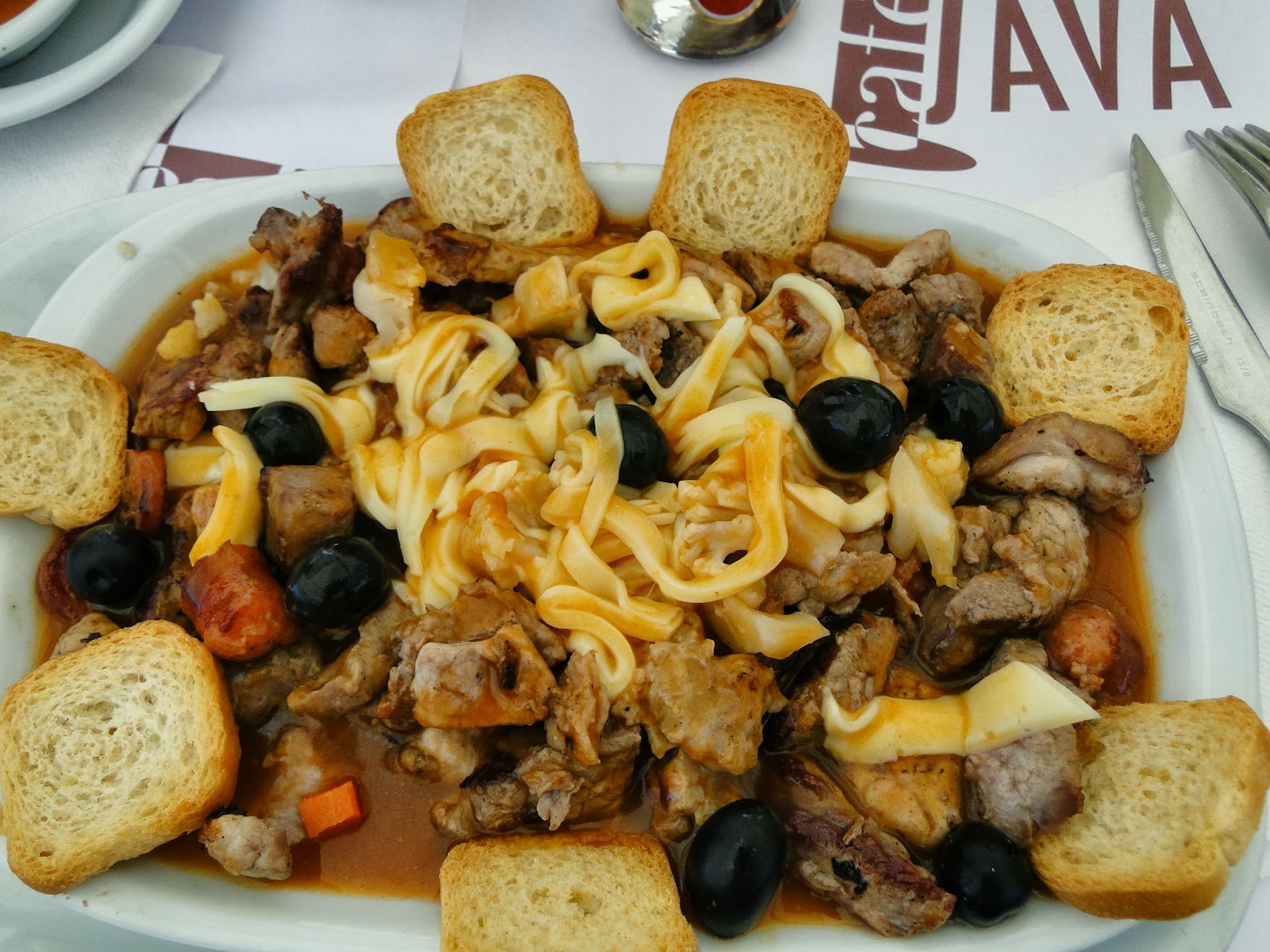 Le dernier repas avant l'avion n'est pas une réussite. Un restaurant rua de Cedofeita parce que ça m'avait laissé une bonne impression. Erreur. La carte nous invite à les "liker" sur facebook et je n'en ferai rien ; le serveur nous snobe le plat commandé est très visiblement moins bien garni que le même commandé par la table d'à côté... en l’occurrence je commande ce qui semble le plat du jour un Rancho et ce plat de viandes et saucisses garni de quelques pois chiches et nouilles ... arrive en l'état un plat de pâtes et pois chiches où je cherche désespérément des morceaux de viandes qui s’avèreront être uniquement le gras de la viande.