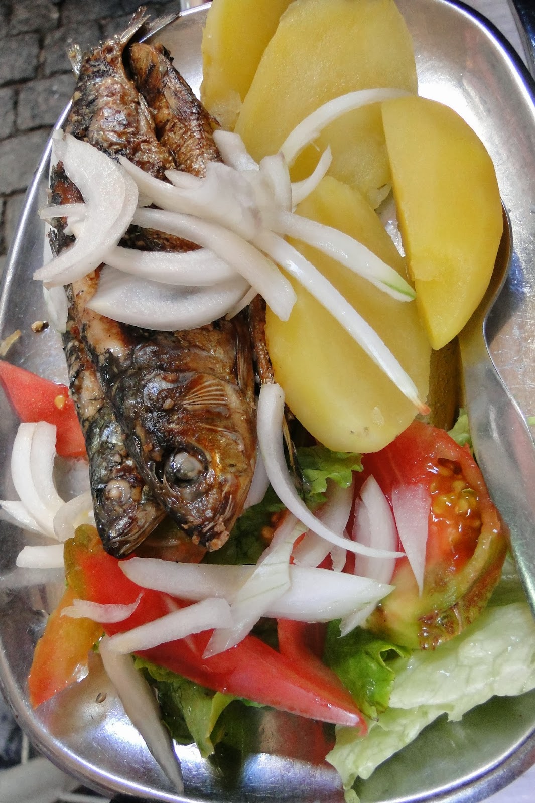 Les deux propriétaires ne parlent que portugais, la carte est écrite à la main sur une feuille de papier et nous ne sommes entourés que d'ouvriers qui passent commandent d'un mot et s'alpagent de table à table.