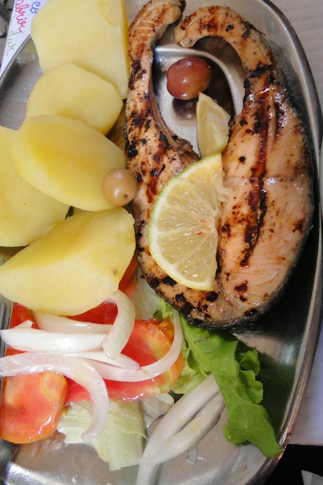 La cuisine est bonne, gouteuses. On sent toutes les saveurs. La sauce de ce boeuf est mirifique... sûrement un peu de margarine là-dedans...c'est légèrement épicé et on n'a aucune envie d'en laisser. Il est dur de payer... tous les habitués, la cuisinière et le patron sont rivés à la télé et discutent ... mais qu'importe ! c'était mirifique et c'est les vacances !